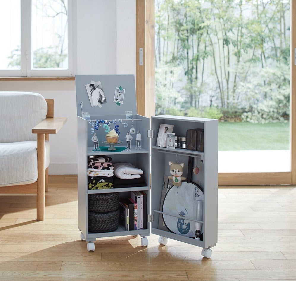 - 尊い"推し"のグッズを一気に収納できる、細部にまでこだわった開閉式のワゴン