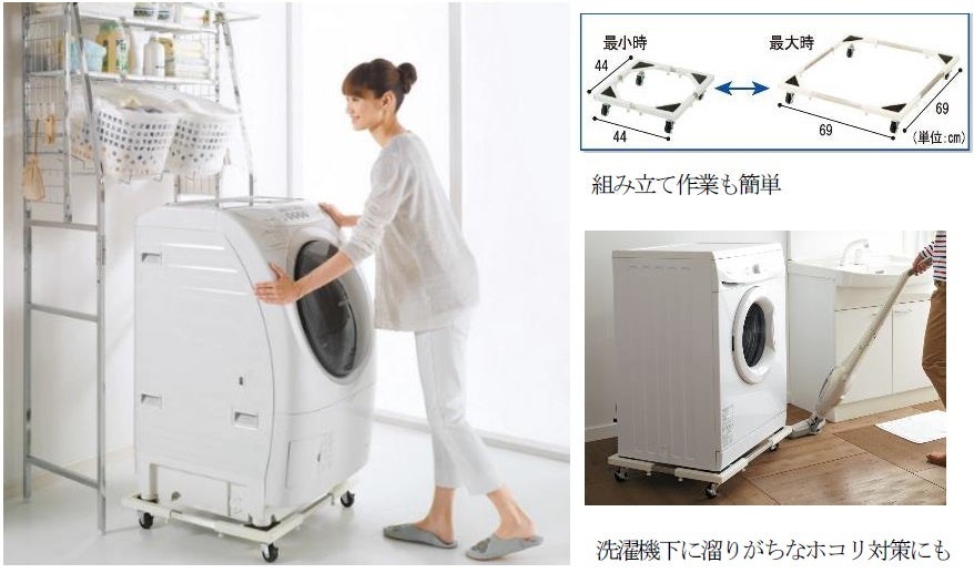 キャスターがついた可動式の洗濯機台は、洗濯機を床に直接置かないことで防カビの役目を果たします。毎日の掃除もしやすくなるので、洗濯機裏の黒カビ対策にも。耐荷重約150 ㎏で、幅・奥行が伸縮可能なので、幅広い機種の洗濯機に対応します。販売台数が50,600 台を突破※した人気商品です。