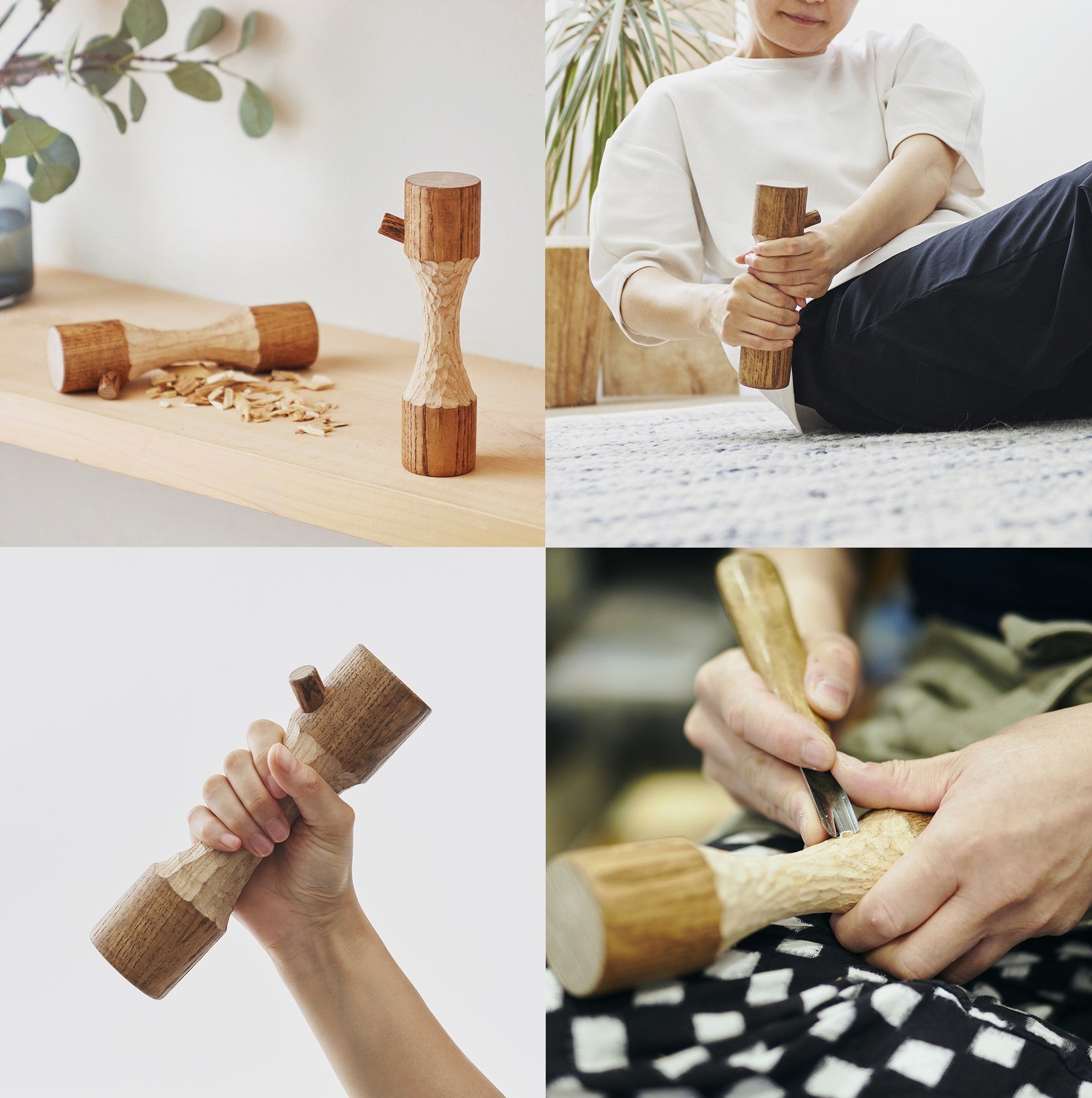 北海道のタモ材を使い、ビーバーがかじった木の跡をイメージしてひとつひとつ職人によって手彫りで仕上げられた、生まれたてのビーバーと同じ重さ約570gのダンベル。軽すぎず重すぎない重さで、毎日無理なくエクササイズを続けられます。インテリアに溶け込みやすい佇まいで、一石二鳥なアイテムです。
