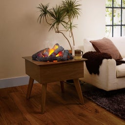 憧れの炎のある暮らしが省スペースで叶う暖炉サイドテーブルです。光と水で表現した炎は本物のようでありながら、火と違って熱くならず、水蒸気だけを放出するのでお子さまやペットのいるお部屋でも安心。ソファサイドやベッドルームの心温まるインテリアとしてお楽しみください。