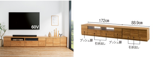 最大85Vテレビに対応するワイドロングなテレビボードをディノスが新発売~工事不要でリビングのサイズにフィットするテレビ台~