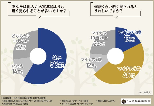そこで今回、イミニ免疫薬粧株式会社(https://www.imini-immunity.jp/)は、40歳以上の女性を対象に、「見た目の年齢と免疫」に関する調査を実施しました。