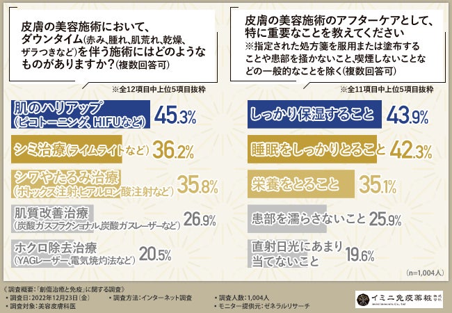 そこで今回、イミニ免疫薬粧株式会社(https://www.imini-immunity.jp/)は、美容⽪膚科医を対象に、「創傷治癒と免疫」に関する調査を実施しました。