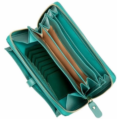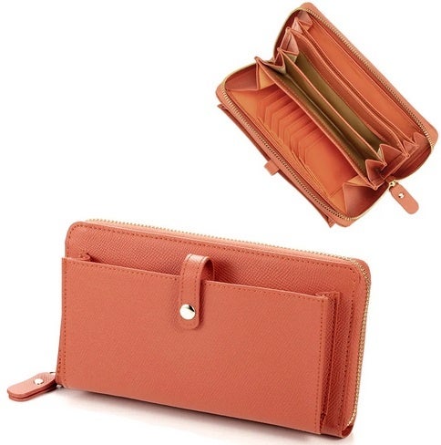 ラウンドファスナーで大きく開き、内部が一目瞭然で、お札もお金もカードもスムーズに出し入れが可能。小銭入れは、ファスナーなしの仕様で、開け閉め不要なのでワンアクションで小銭が取り出せる構造です。