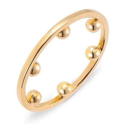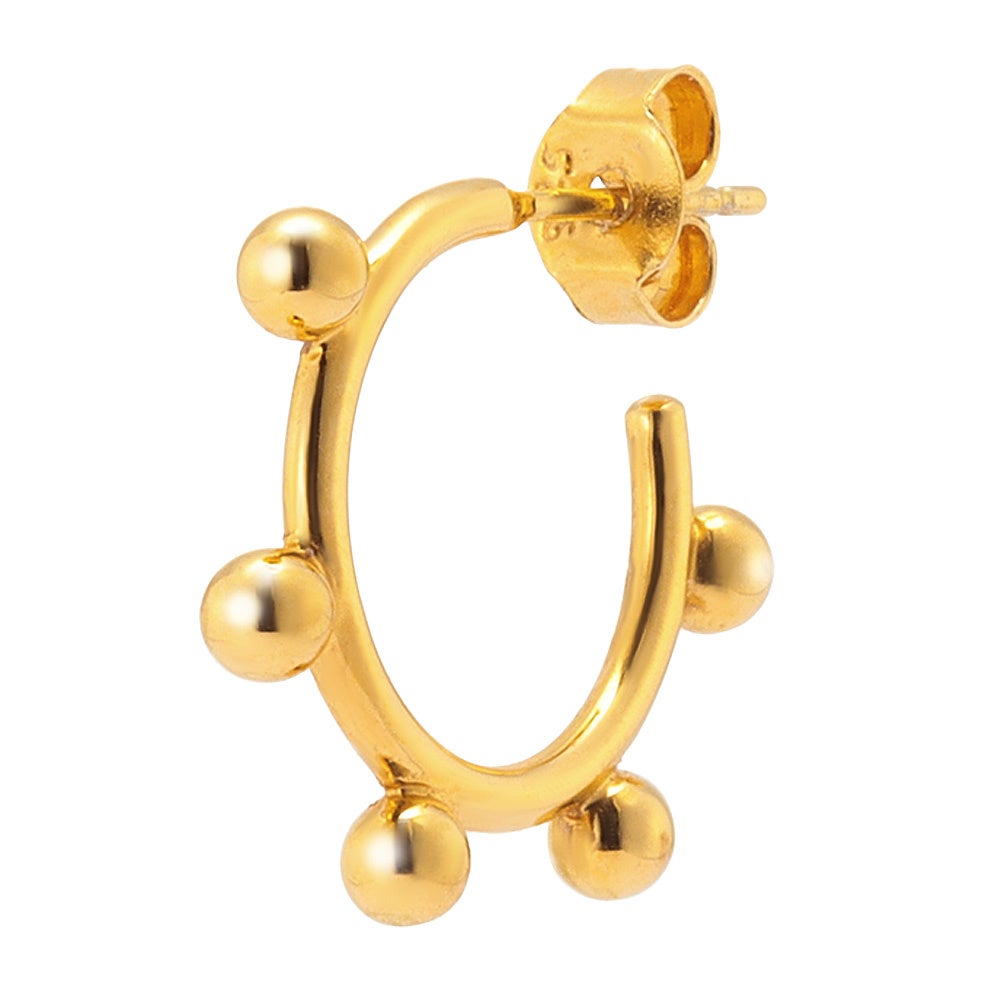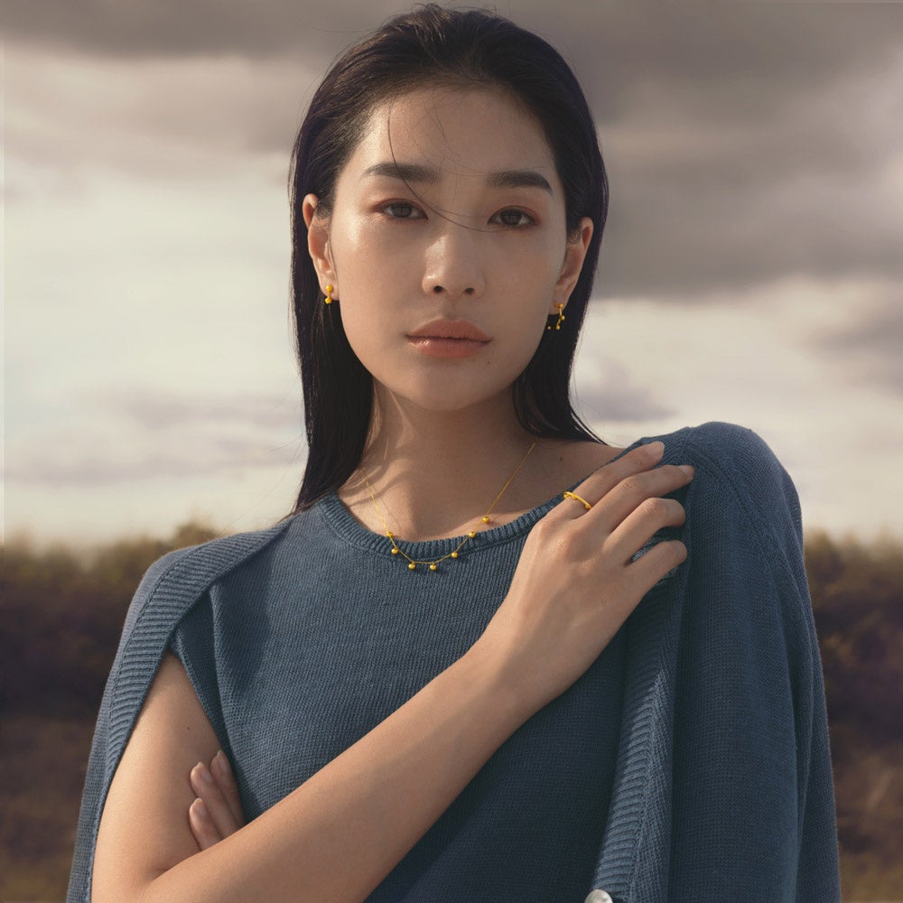 ジュエリーボールを組み合わせた印象的なデザインが特徴のシリーズ。 直線的でシンプルなデザインがゴールドの輝きを引き立てる。セルクルサンクピアスと組み合わせると完成するように計算されたデザイン。