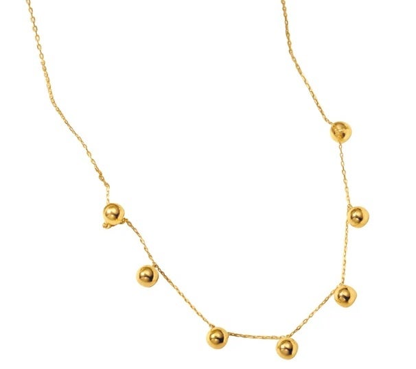 絶妙なボリューム感のステーションネックレス。重ね着けやTシャツにさらりと合わせても◎。