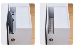 一番のこだわりはすっきりしたデザインとミリ単位でこだわったサイズです。奥行きが約21cmの薄型で、高さ55cmでデスク下に収納できるようになっています。幅35cmとたっぷり収納できる幅45cmの2サイズを用意しました。色もナチュラル・ホワイト・ライトグレーの3色。インテリアへの馴染みやすさを考えています。
