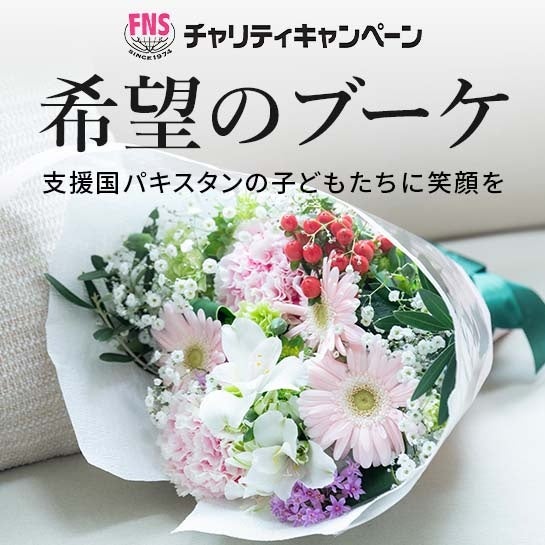 フジテレビフラワーネットhttps://www.fujitv-flower.net/は、"世界の子どもたちの笑顔のために"をメインテーマとした「FNSチャリティキャンペーン」に賛同しています。今年はパキスタンの子供たちへの支援を目的とし「希望のブーケ」を3月27日より販売開始しました。