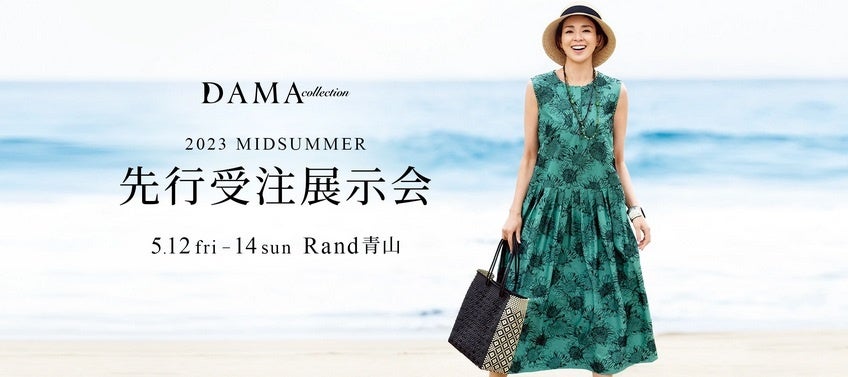 株式会社DINOS CORPORATION(本社:東京都中野区)は、ファッションブランド『DAMA collection(ダーマ・コレクション)』https://www.dinos.co.jp/catalog_s/dama/ より新作の先行受注展示会をオンラインショップでの発売に先駆けて、2023年5月12日(金)から5月14日(日)までRand青山にて期間限定でオープンします。