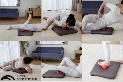 テニスボールよりやや大きいシリコン製ボールが振動する『ウルトラディープストレッチ』は、自重を加えながら使用し筋肉に深い刺激を与えることで、より効果的なストレッチをサポートします。特殊高反発素材の専用クッションとセットで使用することで、より心地よく負荷を高め、効率的にケアすることができます。