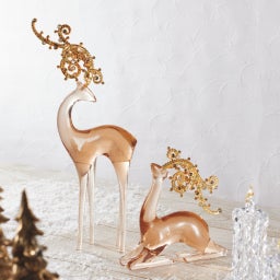 商品担当者が一目惚れしたクリスマスギフトは、優美なフォルムの一対のトナカイ。聖夜の主役に。角にちりばめられた無数のラインストーンが、宝石のように輝きます。