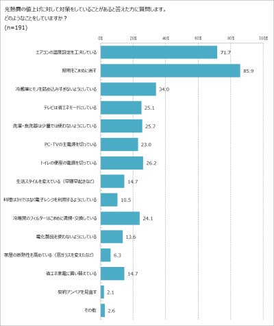 Q: 「光熱費の値上げに対して対策をしていることがあると答えた方に質問します。どのようなことをしていますか?」(複数回答可)