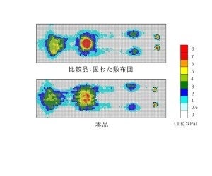 比較品(写真上)と比べると本品(写真下)は体圧が分散されていることがわかります。