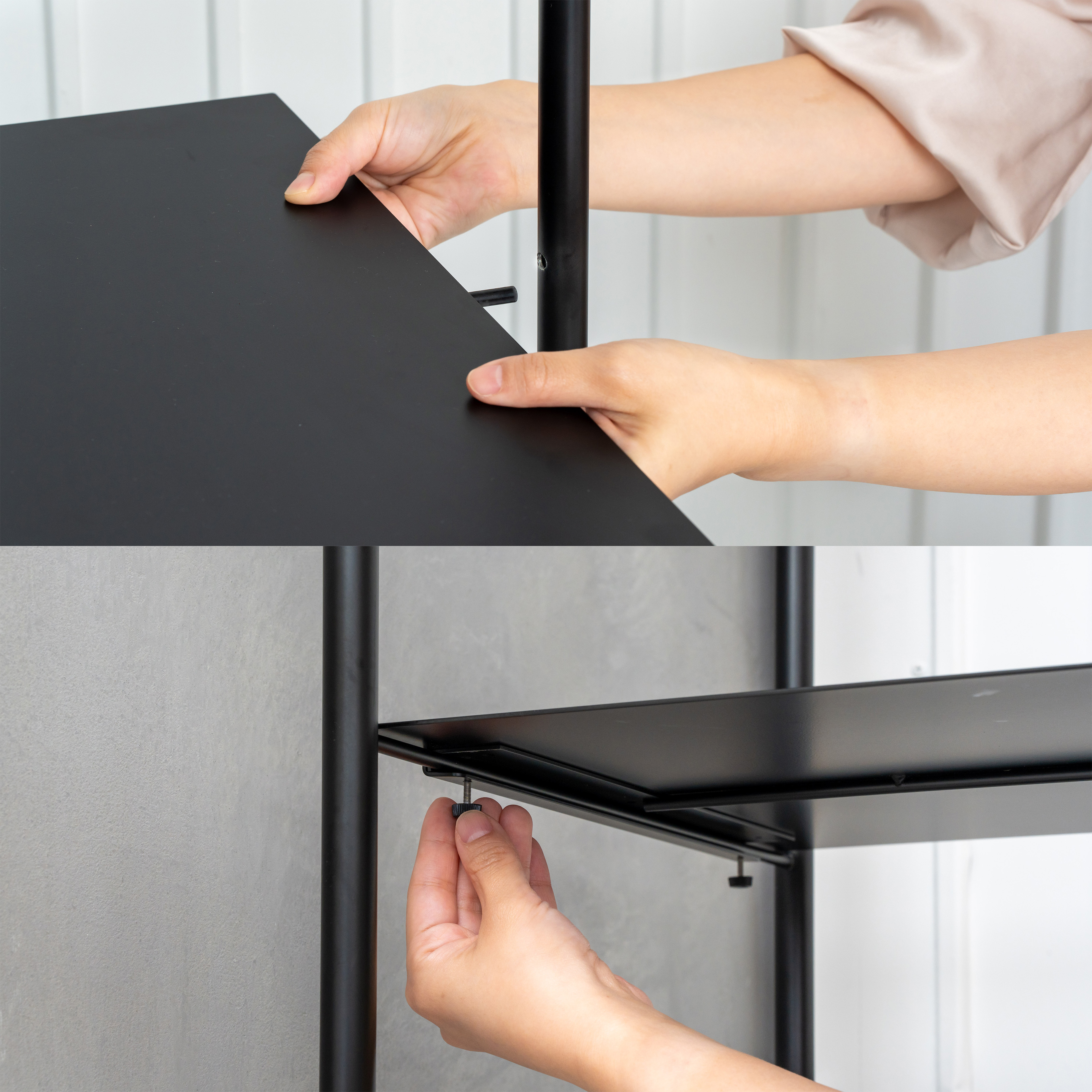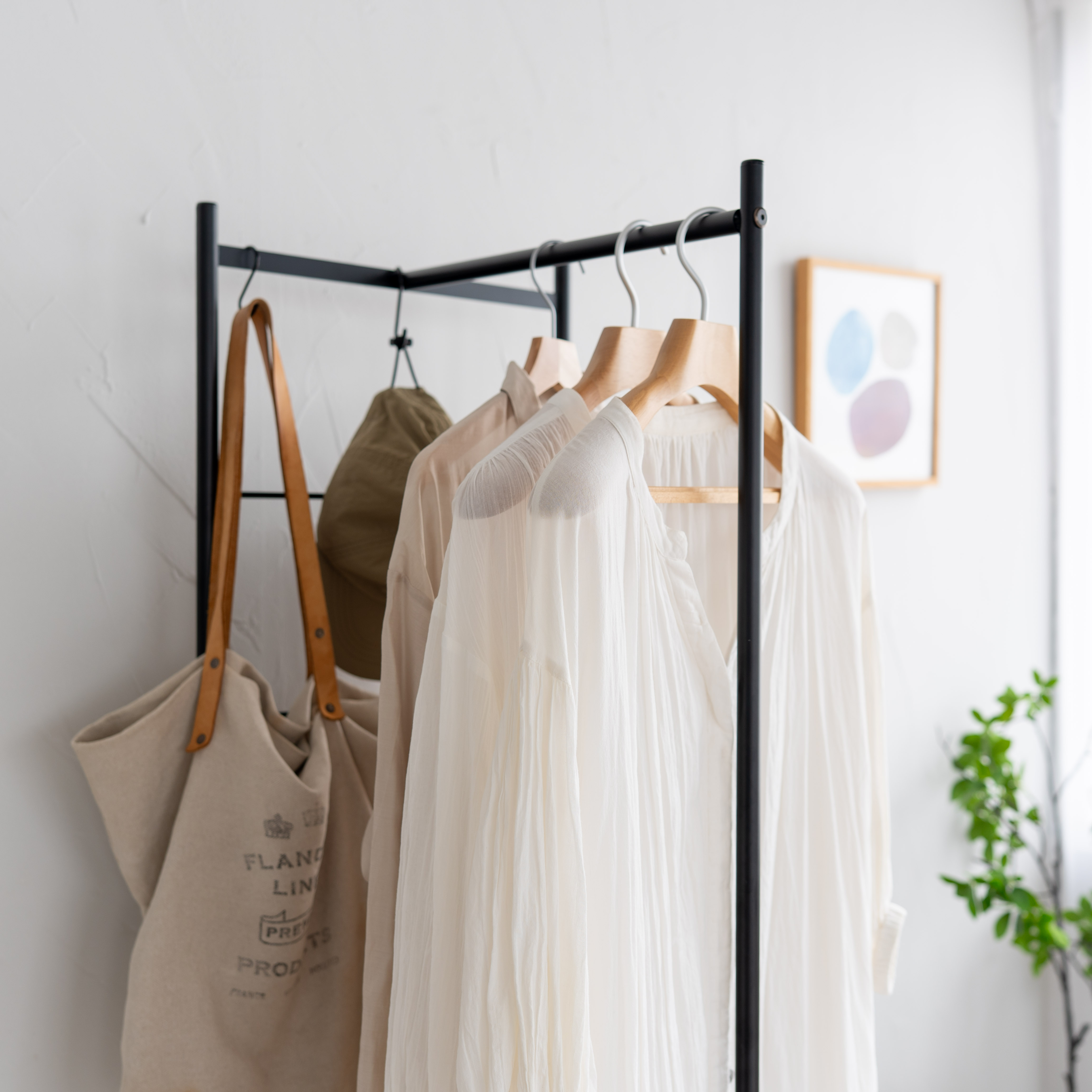 脚を三脚にしているため、ロボット掃除機のごみ回収や水補充が楽にできます。また、ハンガーバーやサイドバー付きで、洋服や帽子、バッグなどをたっぷりかけることも可能です。いずれも圧迫感のないデザインで、お部屋をすっきりと見せることができます。