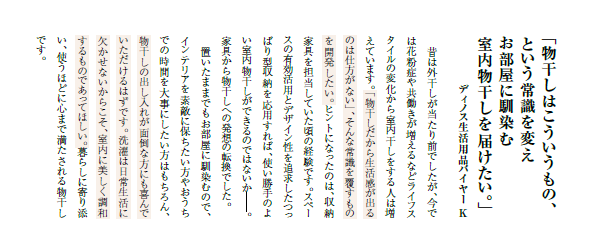 商品の仕様紹介にとどまらず、主要商品は商品担当者のコメントを紹介しています。開発に込めた思い、使って気づいた発見や感動など、本人のリアルな言葉で綴ります。