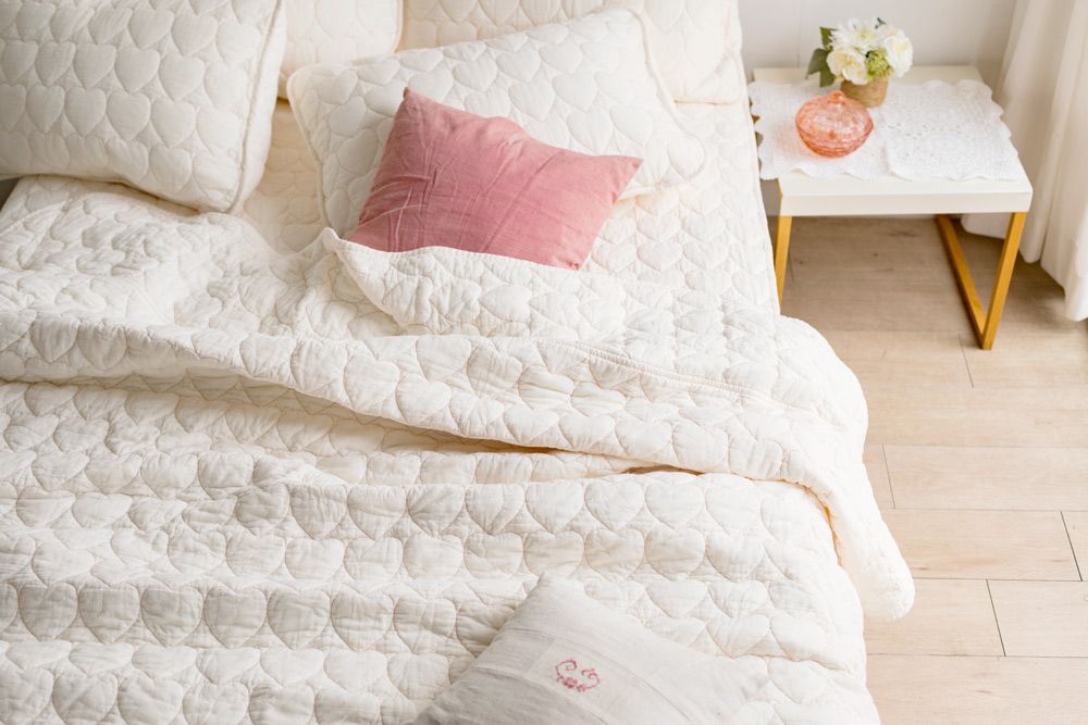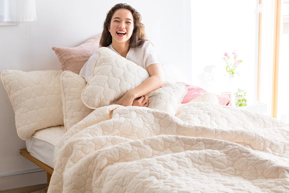 「パシーマ®Xシリーズ "Beloved"ハート柄キルト」では、ピローケースとキルトケット、敷きパッドを用意。毎日の睡眠環境を快適にするための寝具一式として、トータルでカバーするラインアップを揃えました。良質な天然素材を使った寝具であることから、敏感肌の方はもちろん、赤ちゃんやお子さま、ご年配の方まで安心してご使用いただけます。