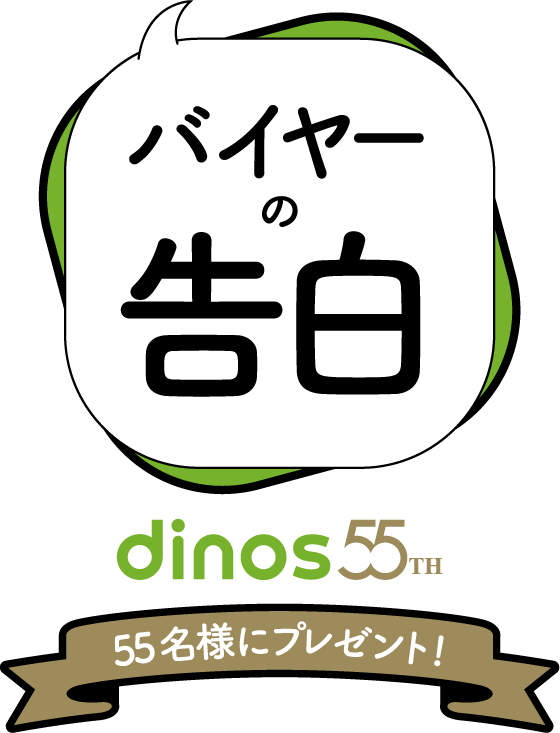 dinosは1971年に創業し、55周年を迎えます。半世紀以上の間変わらずdinosが大切にしてきたバイヤーが自ら目利きし、惚れ込んだ商品をお客さまに届けるという「dinosらしさ」を盛り込んだ、「バイヤーの告白」キャンペーンがスタートします。