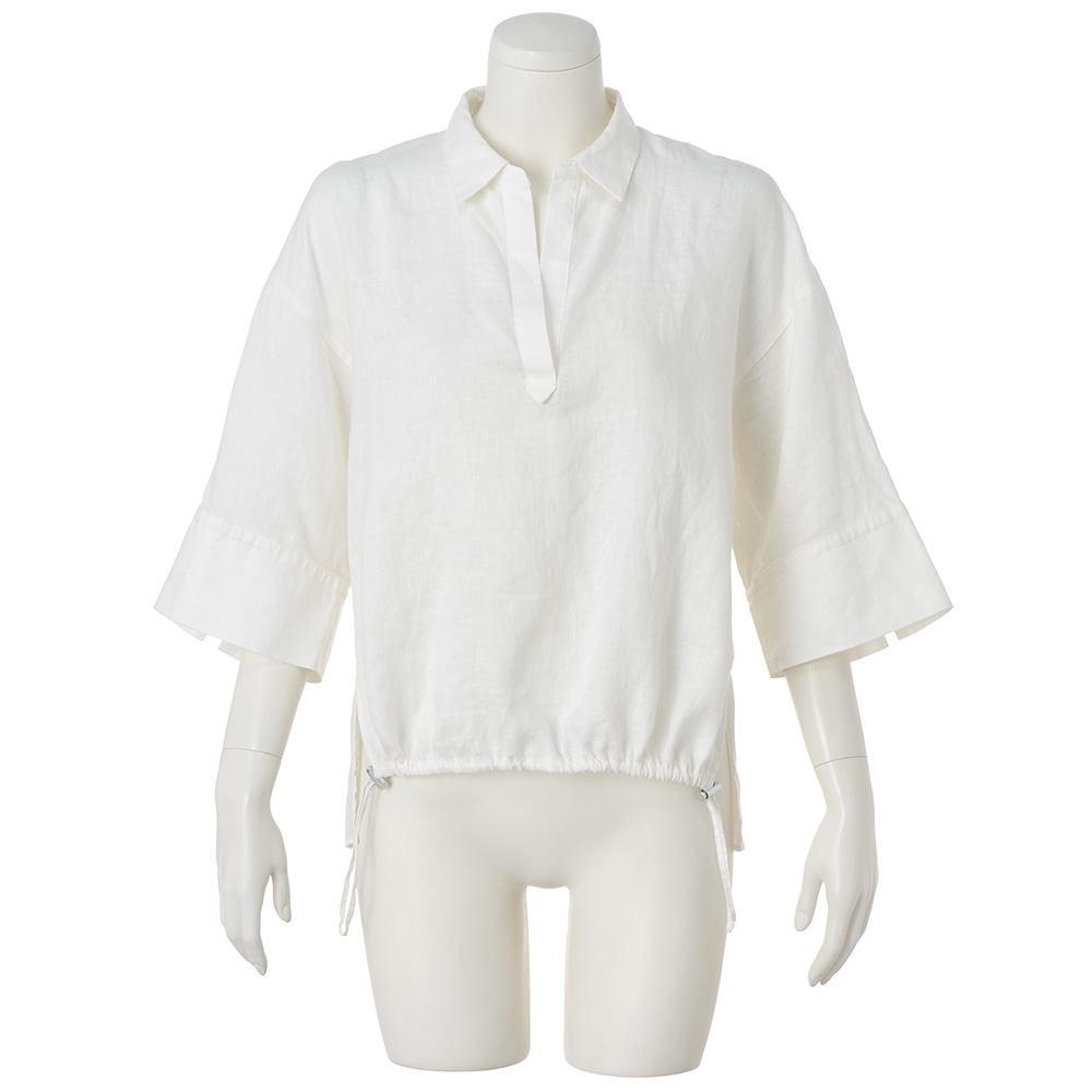 洗えるフレンチリネン ドローストリング スキッパー ブラウス