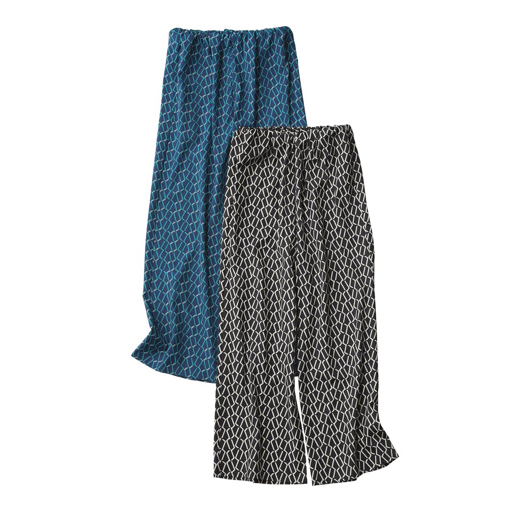 洗える 速乾 接触冷感 UVカット 幾何学柄 とろみ ワイドパンツ