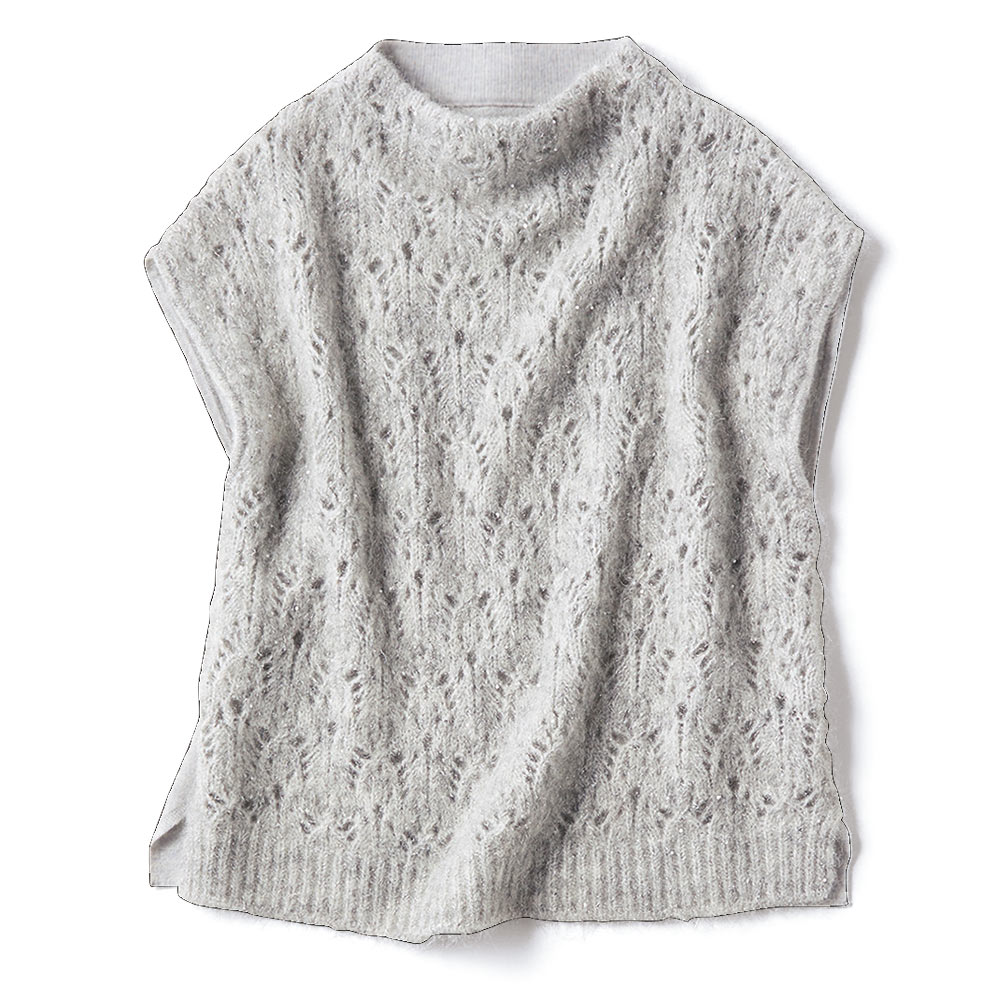 ウールカシミヤ混 パールビジュー ニットプルオーバー