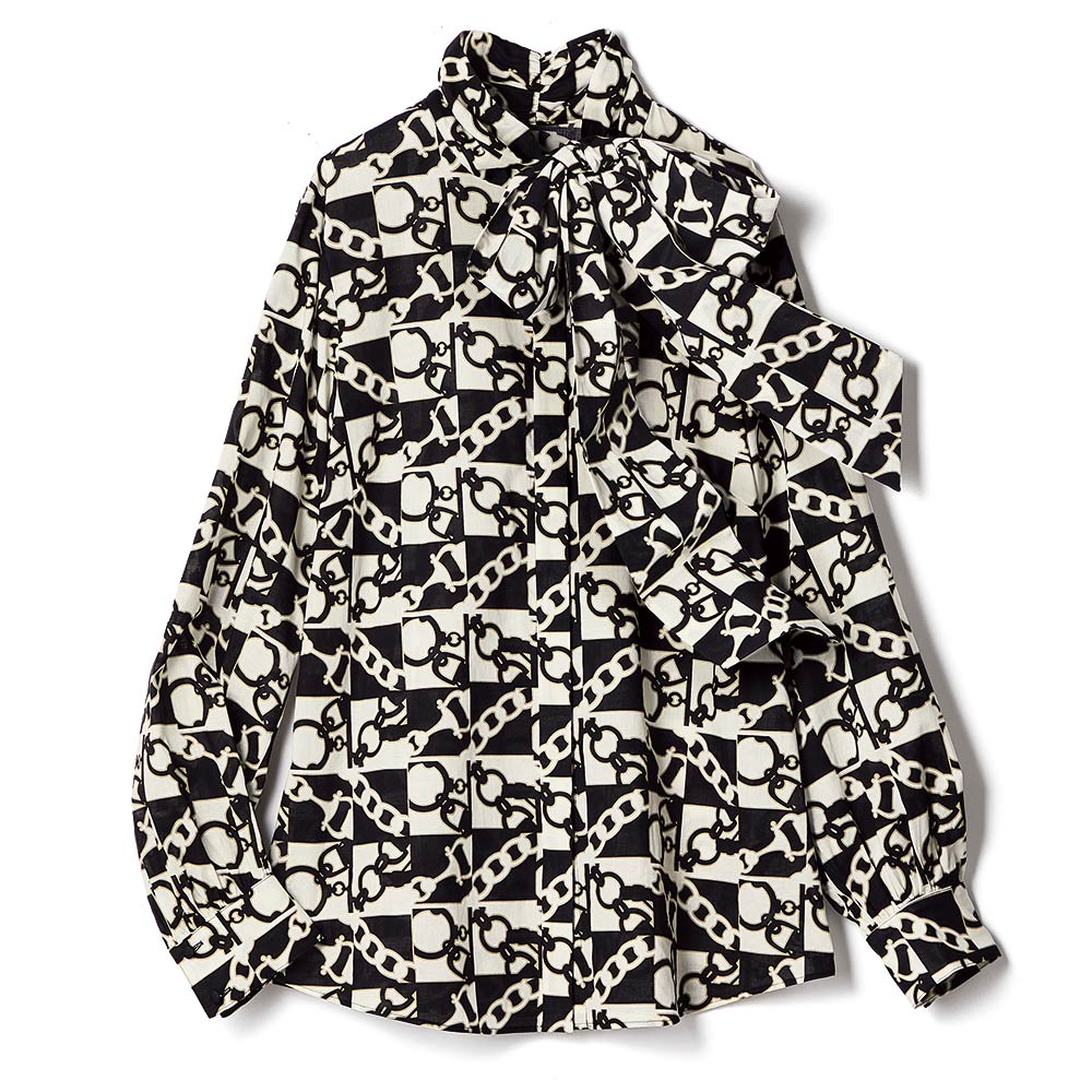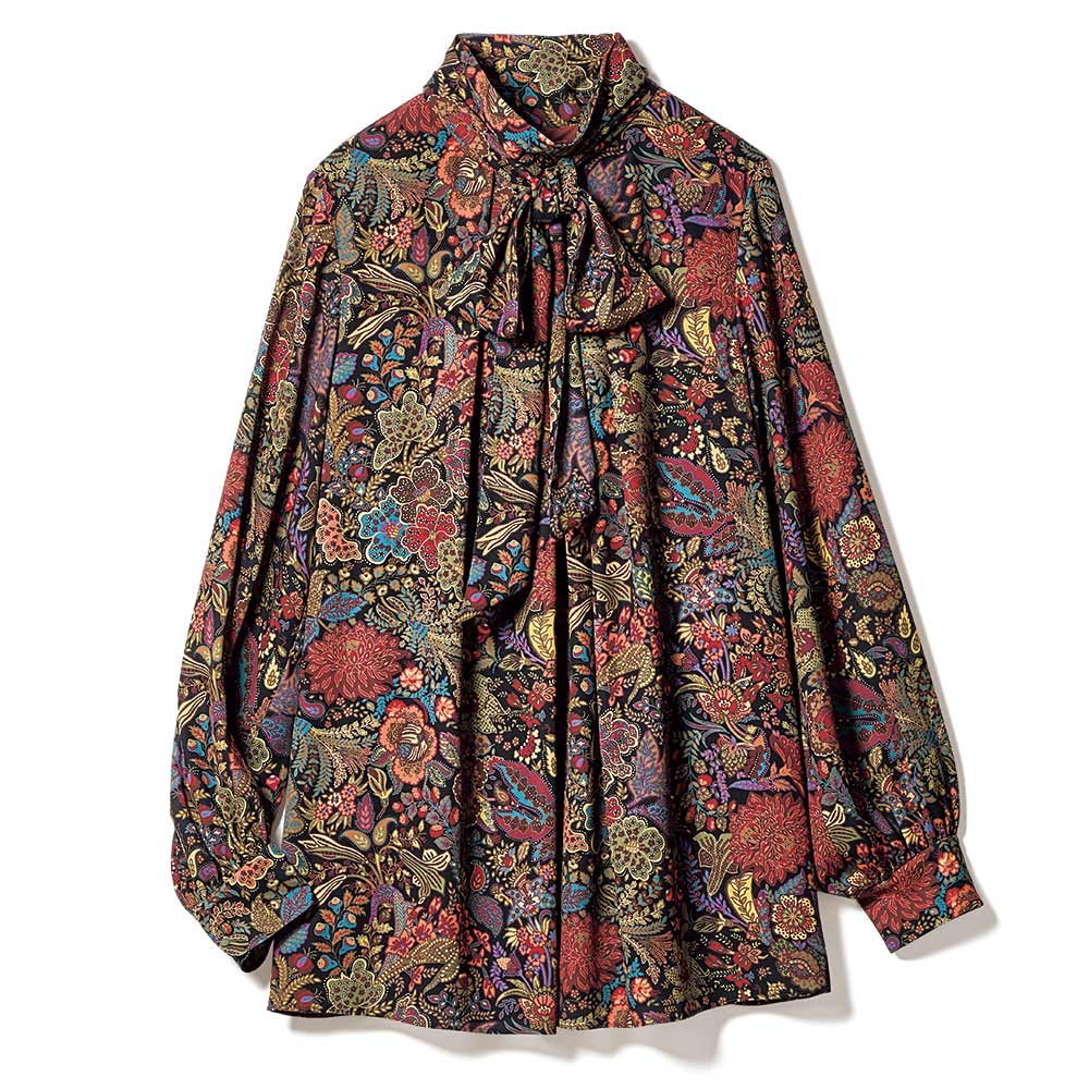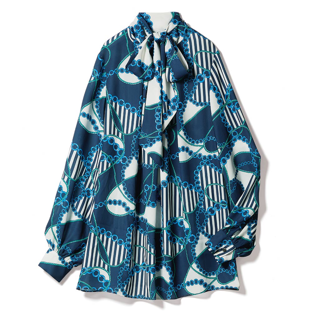 リボンボウタイ風 とろみサテンブラウス